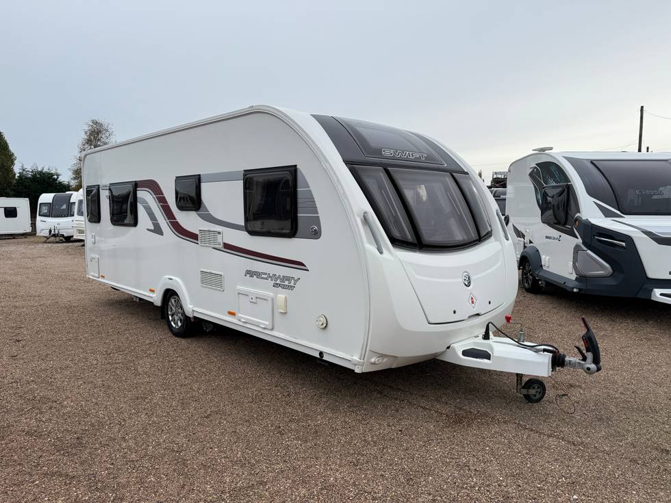 SWIFT ARCHWAY SPORT TYWELL 4 BERTH FIXED ISLAND BED TOURING CARAVAN - FULL END WASHROOM *MOTOR MOVER & BIKE RACK*