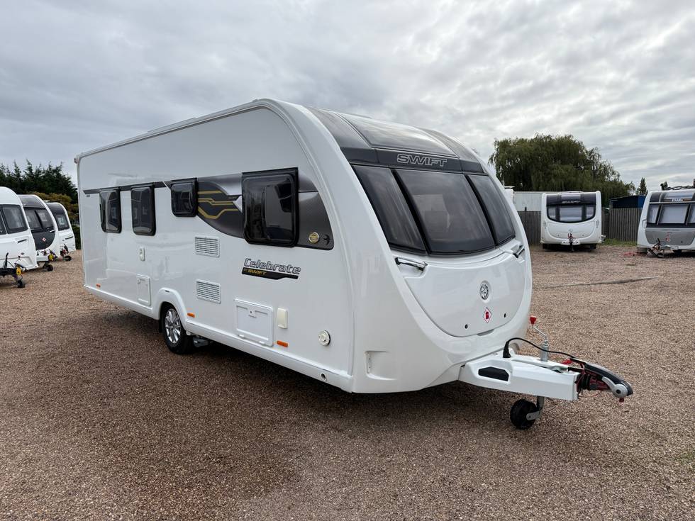 SWIFT CELEBRATE 4 EB 4 BERTH FIXED REAR ISLAND BED TOURING CARAVAN - CENTRE WASHROOM *AUTO MOTOR MOVER*