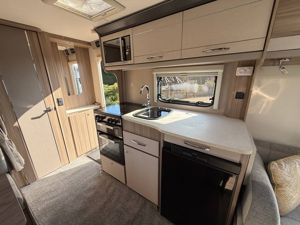 Alloy Wheels, ALKO Stabiliser, ALKO ATC, Alarm, Mains Electric, Battery Charger, Blinds/Flyscreens, ALDE Central Heating, Cassette Electric Flush Toilet, DAB Radio/Bluetooth/AUX/USB, Fridge/Freezer, Microwave, Hob/Oven/Grill, Panaramic Roof Light, TV Aerial, Removable Carpets, External 240v Socket, External BBQ Point, Solar Panel, Wireless phone charging base...