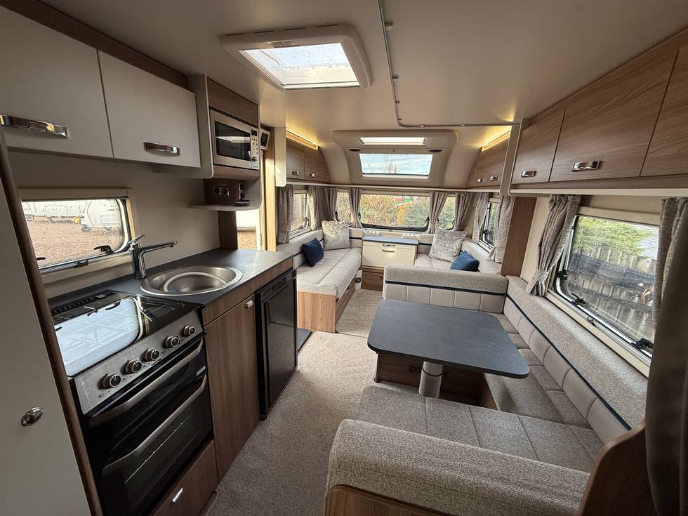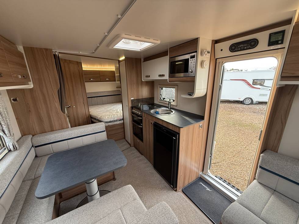 Alloy Wheels, ALKO Stabiliser, ALKO ATC, Alarm, Mains Electric, Battery Charger, Blinds/Flyscreens, Truma Combi Heating, Cassette Electric Flush Toilet, Radio/USB/AUX, Fridge/Freezer, Microwave, Hob/Oven/Grill, Panaramic Roof Light, TV Aerial, Removable Carpets, External 240v Socket, External BBQ Point, Solar Panel