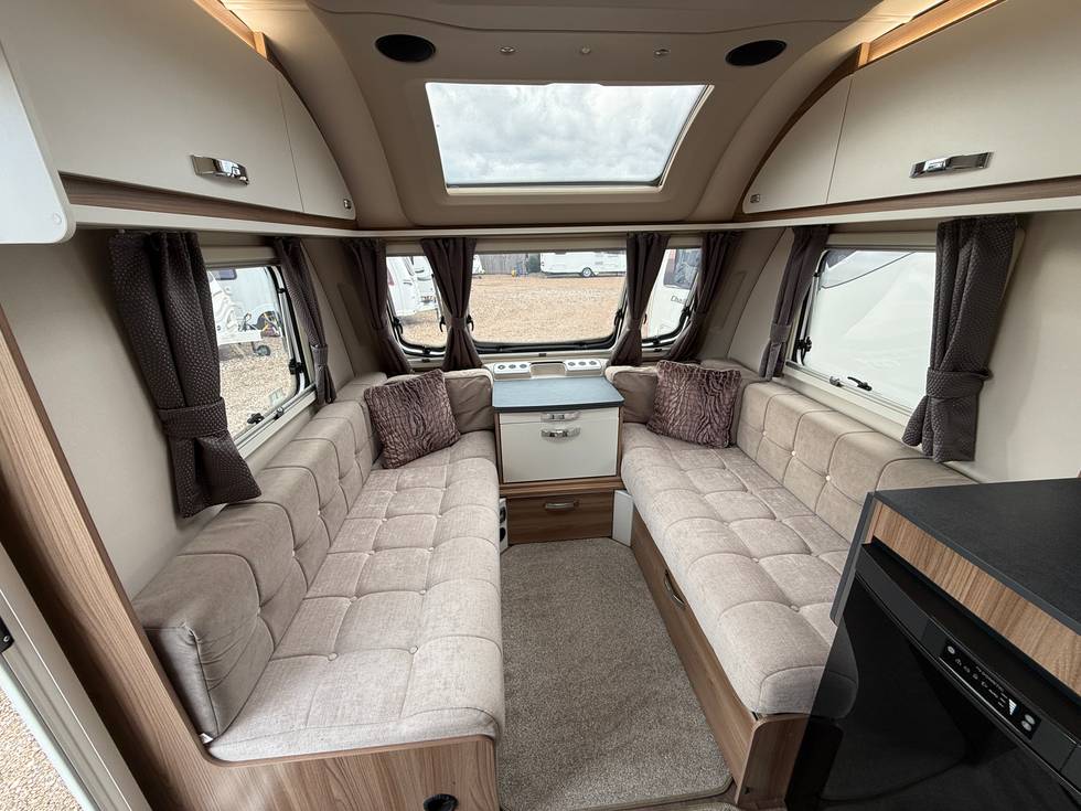 Alloy Wheels, ALKO Stabiliser, ALKO ATC, Alarm, Mains Electric, Battery Charger, Blinds/Flyscreens, Truma Combi Heating, Cassette Electric Flush Toilet, DAB/FM Radio, Fridge/Freezer, Microwave, Hob/Oven/Grill, Panaramic Roof Light, TV Aerial, Removable Carpets, External 240v Socket, External BBQ Point, Solar Panel