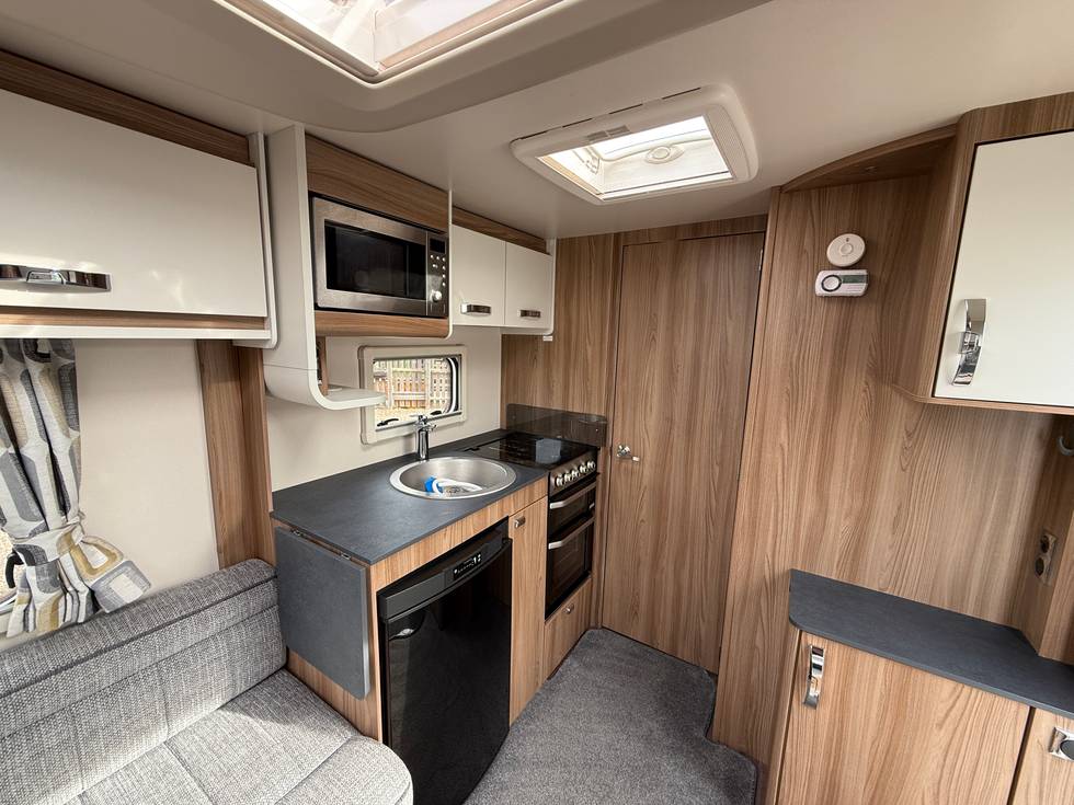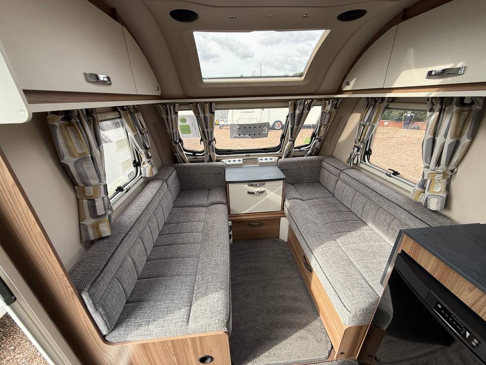 Alloy Wheels, ALKO Stabiliser, ALKO ATC, Alarm, Mains Electric, Battery Charger, Blinds/Flyscreens, Truma Combi Heating, Cassette Electric Flush Toilet, DAB/FM Radio, Fridge/Freezer, Microwave, Hob/Oven/Grill, Panaramic Roof Light, TV Aerial, Removable Carpets, External 240v Socket, External BBQ Point, Solar Panel