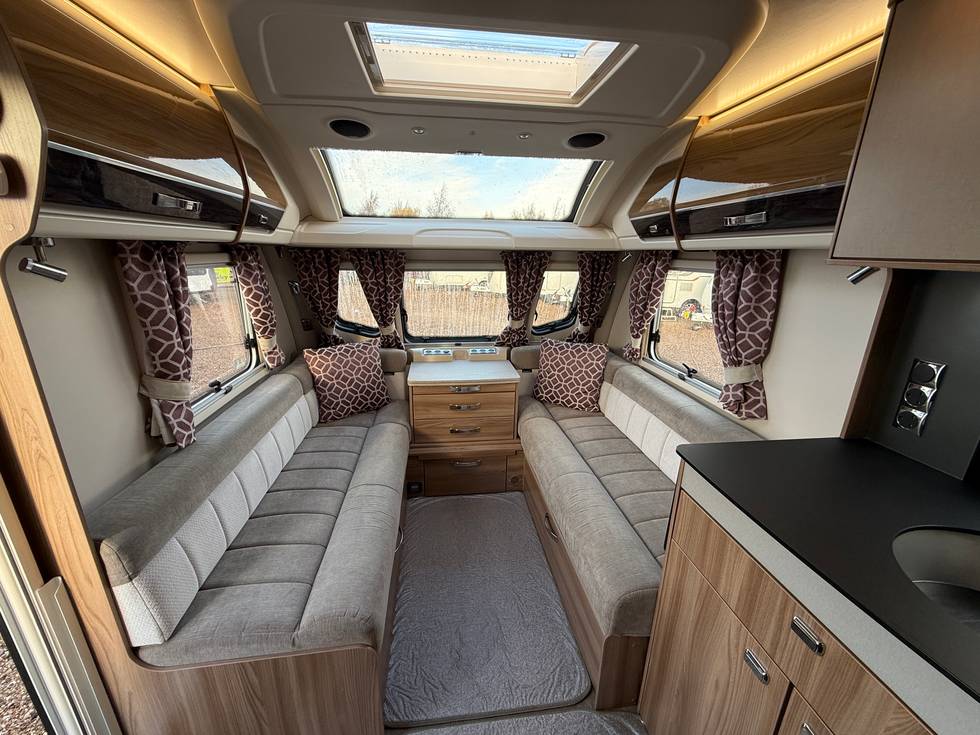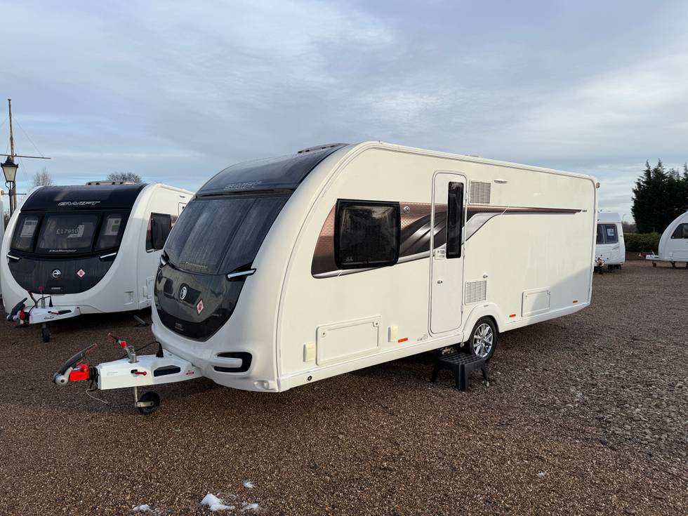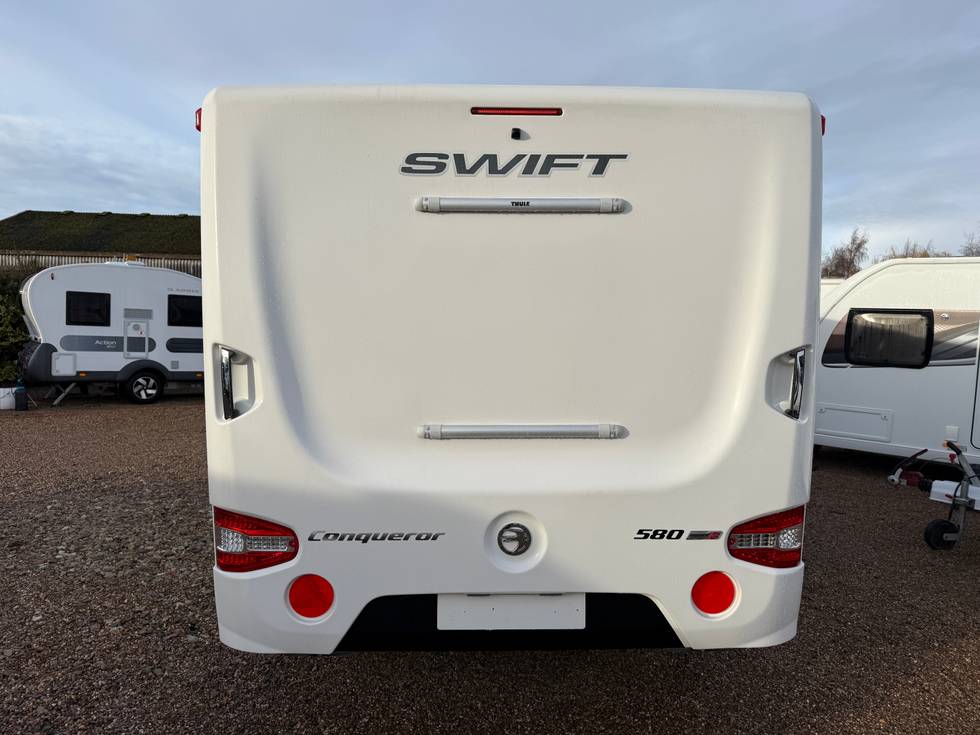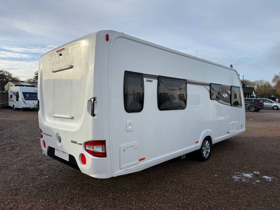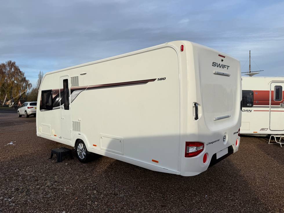 2018 SWIFT CONQUEROR 580 ALDE - 4 BERTH FIXED TRANSVERSE ISLAND BED TOURING CARAVAN - FULL END WASHROOM - 2018 MODEL - REGISTERED 2019