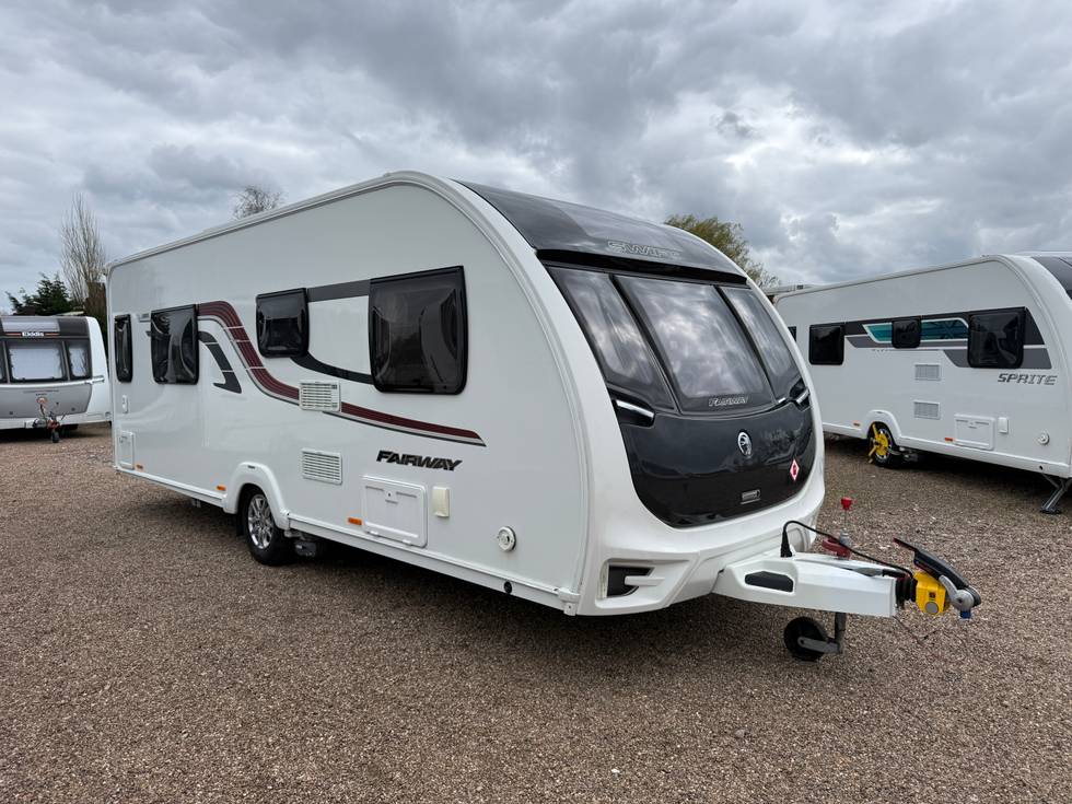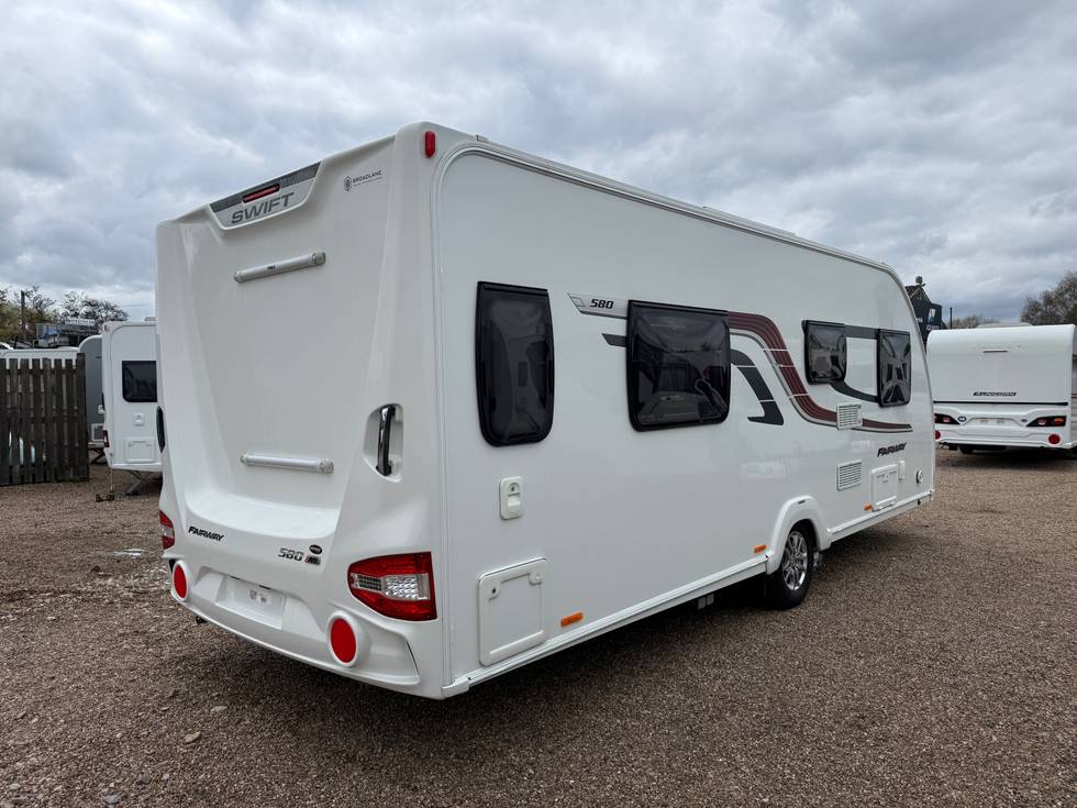 2017 SWIFT FAIRWAY 580 ALDE - 4 BERTH FIXED TRANSVERSE ISLAND BED TOURING CARAVAN - FULL END WASHROOM